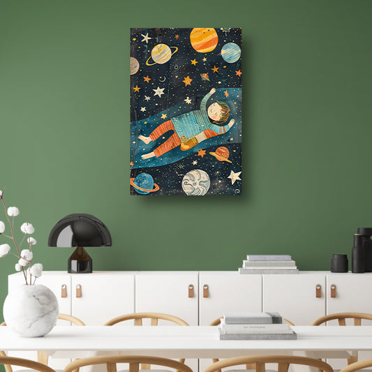 Dromend Jongetje in een Kleurrijk Heelal poster