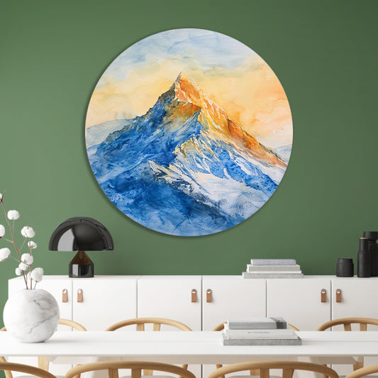 Kleurrijke aquarel van majestueuze bergtop aluminium muurcirkel