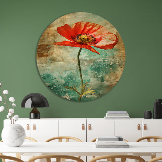 Prachtige rode papaverbloem op rustieke achtergrond aluminium muurcirkel