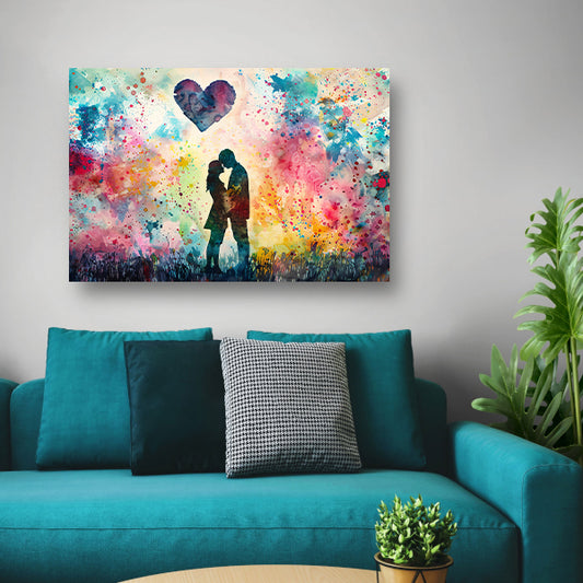 Liefde omhuld in abstracte kleuren canvas met baklijst
