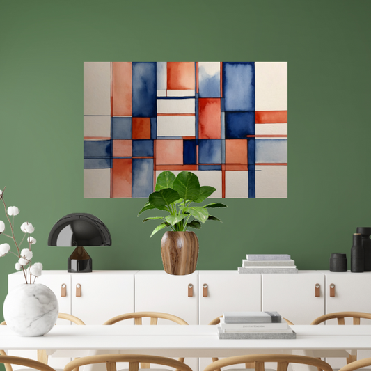 Harmonie in Abstractie: Blauw en Rood Aquarel poster