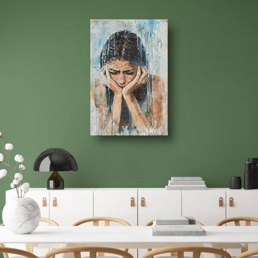Emotionele vrouw geschilderd in aquarel acrylglas