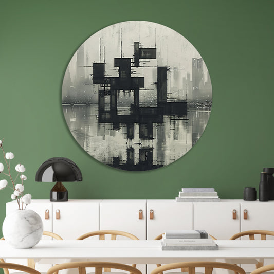 Digitale abstracte kunst van stadslandschap aluminium muurcirkel