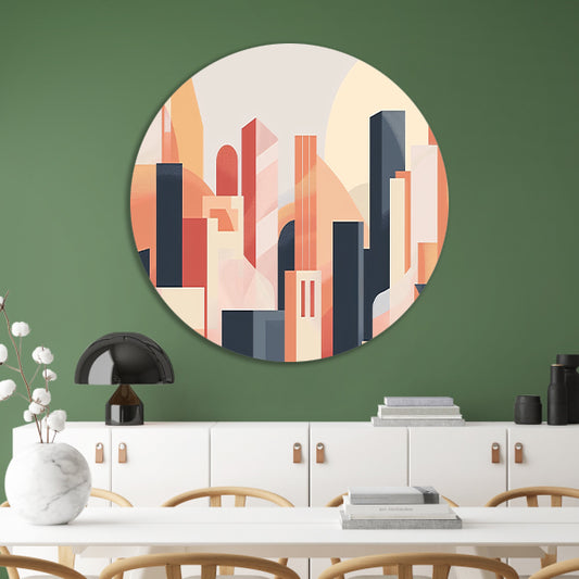 Geometrische stad in warme kleuren aluminium muurcirkel