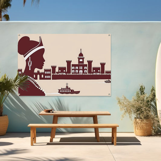 Elegant silhouet van Afrikaanse vrouw met kasteel tuinposter