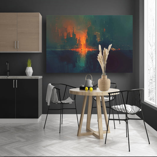 Abstracte skyline met water weerspiegeling canvas met baklijst