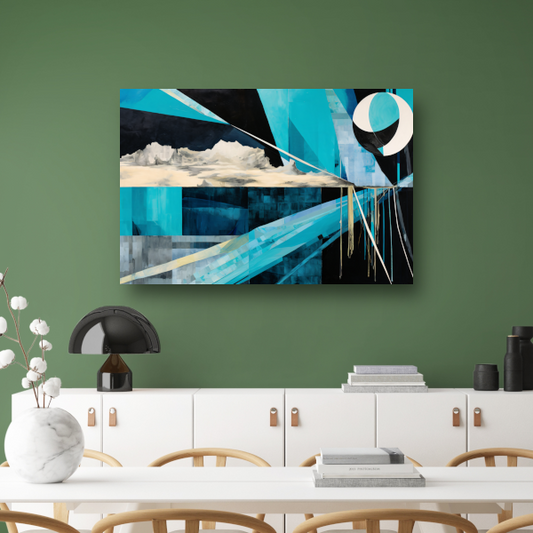 Abstracte skyline met dynamische vormen en kleuren canvas met baklijst