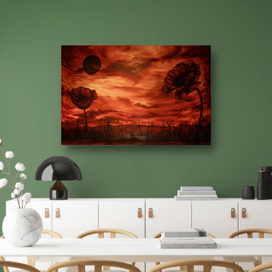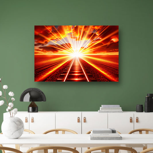Spoorweg naar vurige zonsondergang canvas met baklijst