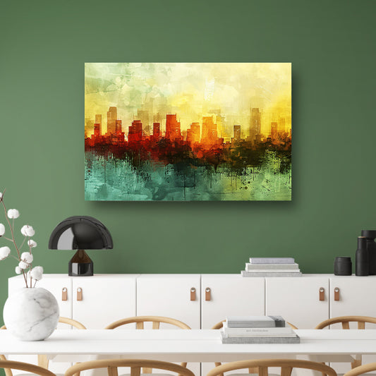Abstracte skyline met dynamische vormen en kleuren canvas