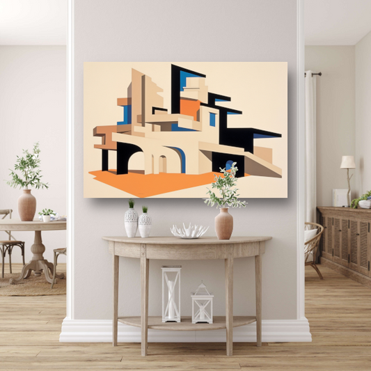 Onze architectuur schilderijen brengen de schoonheid en grandeur van gebouwen en structuren naar je interieur. Met gedetailleerde weergaven van iconische gebouwen, moderne designs of historische architectuur voegen deze schilderijen een krachtige en elegante uitstraling toe aan elke ruimte. De scherpe lijnen en strakke vormen van architectuur kunst zorgen voor een indrukwekkende visuele impact. Of je nu houdt van klassieke monumenten of hedendaagse ontwerpen, deze schilderijen passen perfect in een modern of klassiek interieur. Ze zijn eenvoudig op te hangen en transformeren je woonkamer, kantoor of slaapkamer in een stijlvolle en inspirerende omgeving. Geef je ruimte een architectonische flair met onze prachtige schilderijen.
