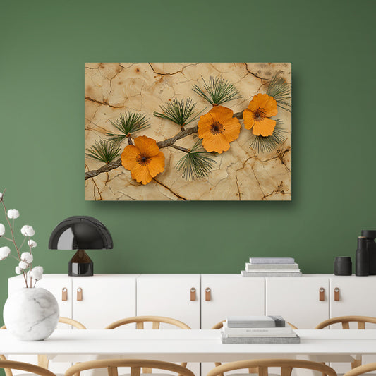 Minimalistische bloemen op een gebarsten achtergrond canvas