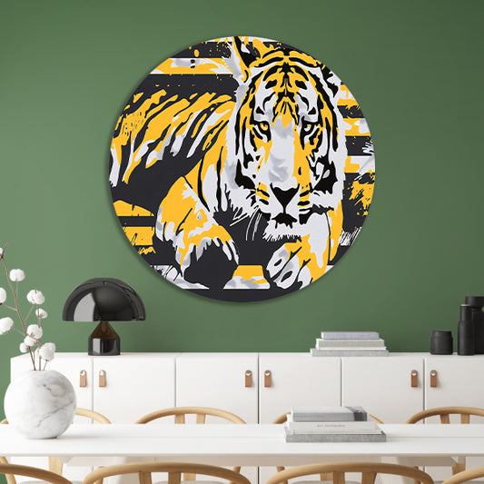 Dynamische tijger in moderne abstracte stijl aluminium muurcirkel
