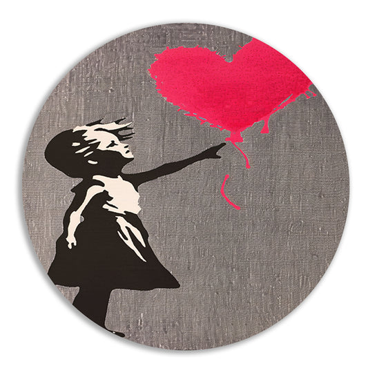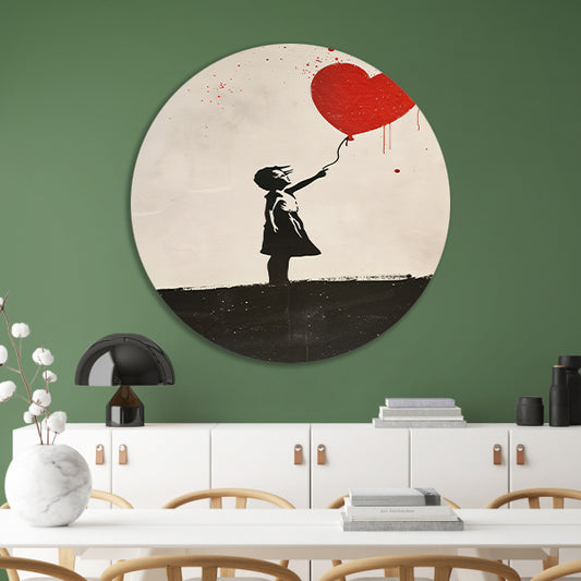 Meisje laat een hartvormige ballon los aluminium muurcirkel