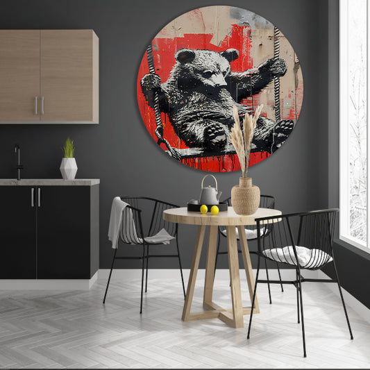 Zwart-wit street art beer en kind aluminium muurcirkel