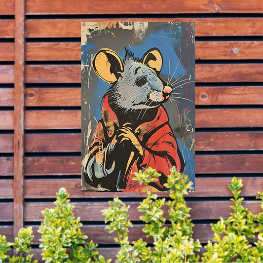 Muis met Rode Jas in Street Art Stijl tuinposter