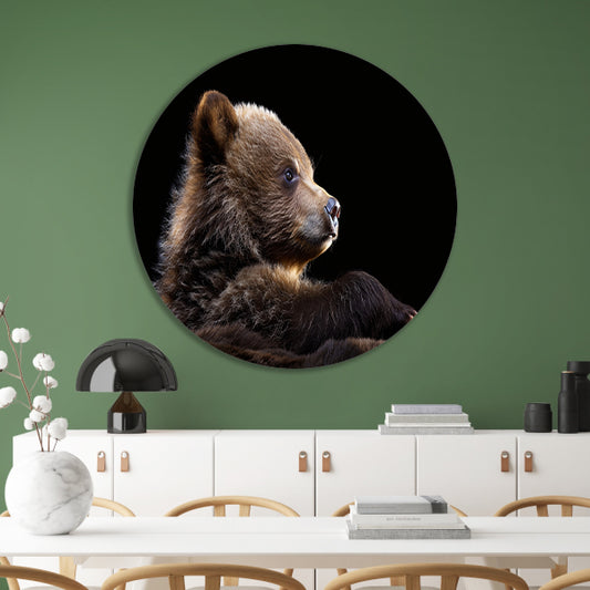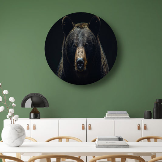 Portret van een Beer in Mysterieuze Duisternis aluminium muurcirkel