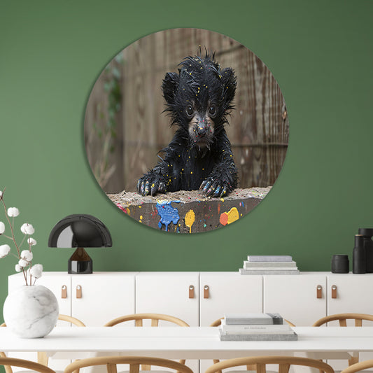 Speelse Beer Kladdert Muur aluminium muurcirkel