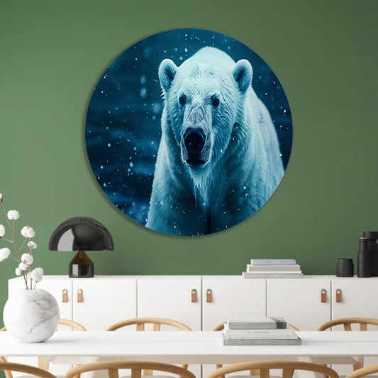 IJsbeer in de sneeuwstorm aluminium muurcirkel
