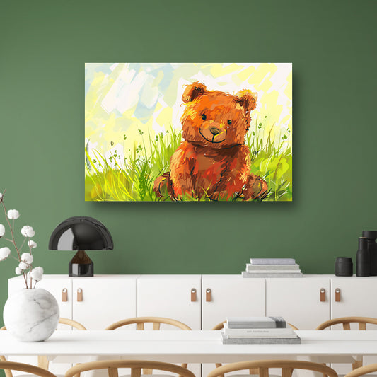 Vrolijke beer in kubistisch kleurenpalet canvas