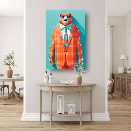 Moderne Beer in Oranje Pak Kunstwerk canvas