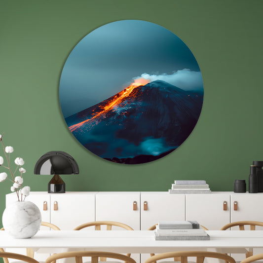 Vulkaanuitbarsting in de Nacht aluminium muurcirkel