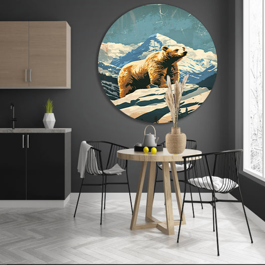 Vintage illustratie beer in berglandschap aluminium muurcirkel