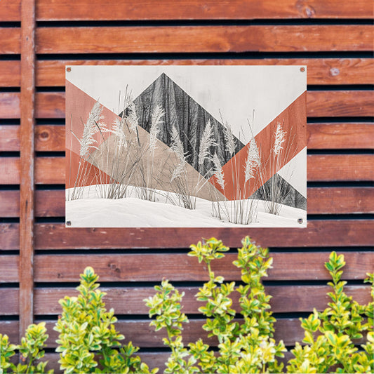 Abstracte minimalistische kunst met planten en bergen tuinposter