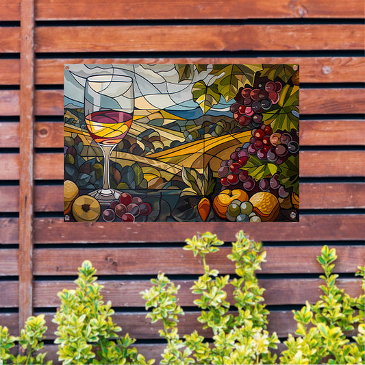 Kubistisch landschap met wijn en druiven tuinposter