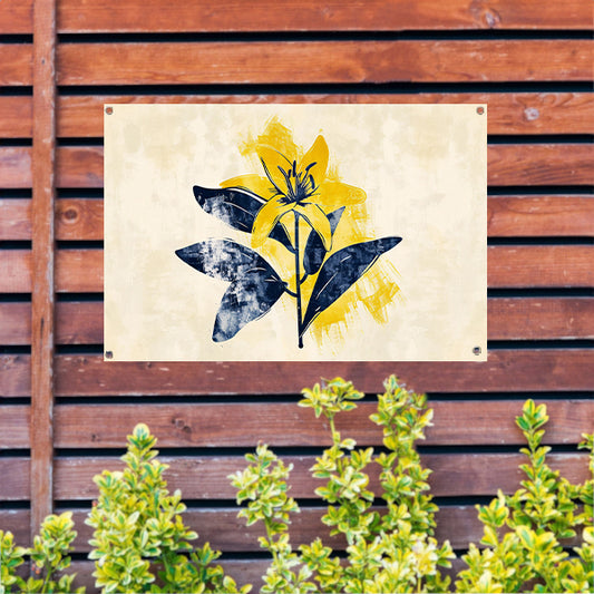 Minimalistische gele bloem met blauwe bladeren tuinposter