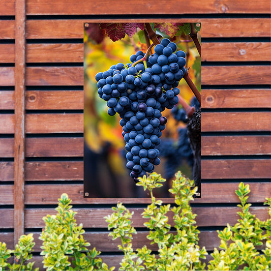 Gouden zonlicht op rijpe blauwe druiven tuinposter