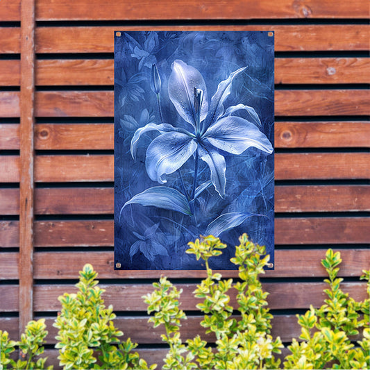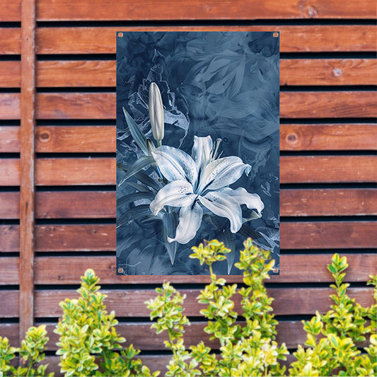 Gedetailleerde digitale lelie in blauw-wit tuinposter