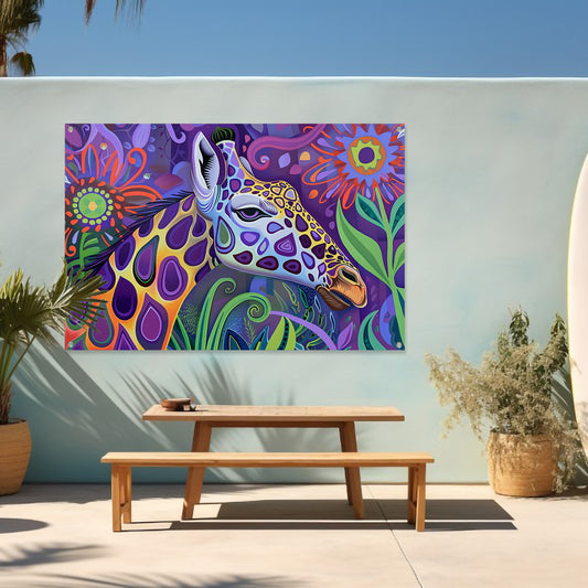 Abstract kleurrijk giraffe schilderij in psychedelische stijl tuinposter