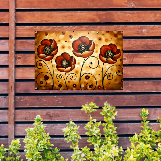 Abstracte warme bloemen kunstwerk schilderij tuinposter