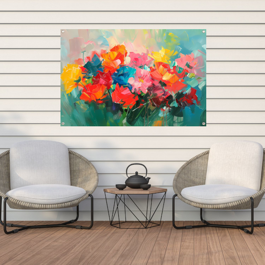 Kleurrijke abstracte bloemenpracht in expressieve stijl tuinposter