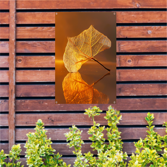 Blad perfect weerspiegeld in gouden licht tuinposter