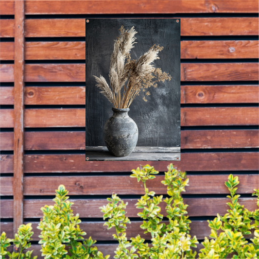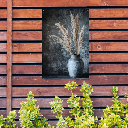 Minimalistische Vaas met Pampasgras tegen Donkere Achtergrond tuinposter