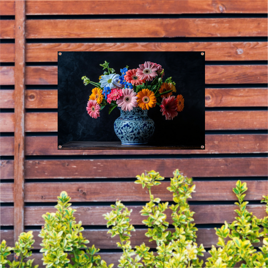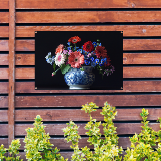 Elegante Bloemensamenstelling in Delfts Blauwe Vaas tuinposter