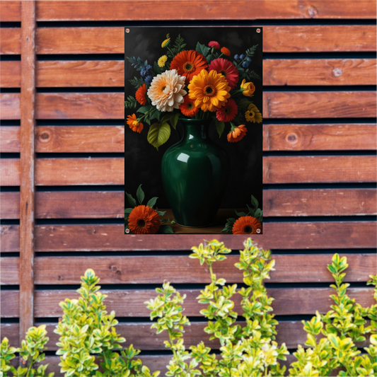 Weelderig Bloemenboeket in Groene Vaas tuinposter