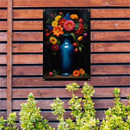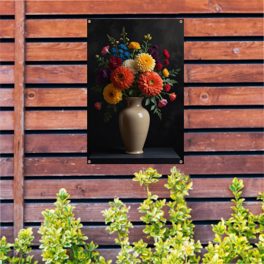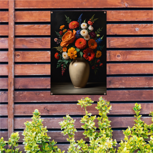 Kleurrijke Bloemenpracht in Donkere Vaas tuinposter