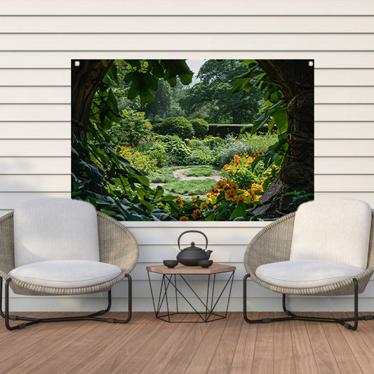 Verborgen Bloementuin Achter Oude Muur tuinposter