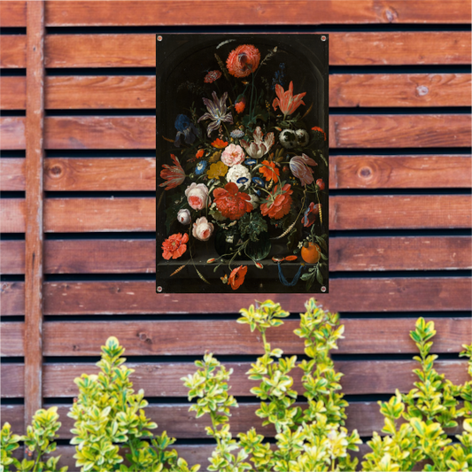 Bloemen in een glazen vaas - Abraham Mignon tuinposter