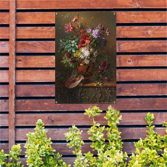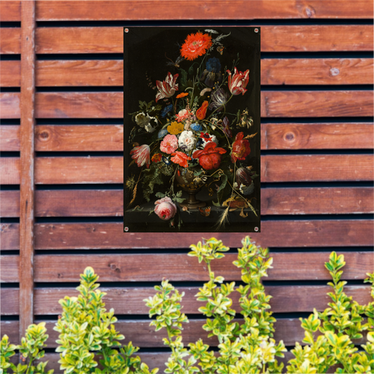 Bloemen in een metalen vaas - Abraham Mignon tuinposter