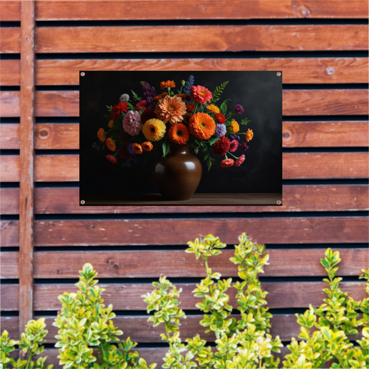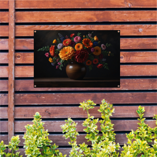Uitbundige bloemenselectie in stralende vaas tuinposter