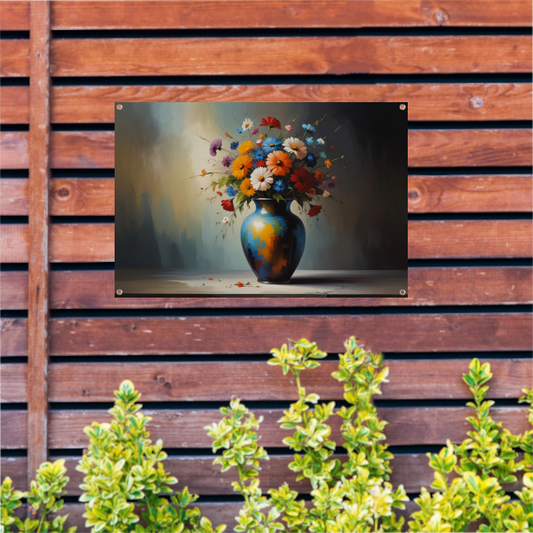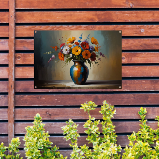 Impressionistische bloemenpracht in kleurrijke vaas tuinposter