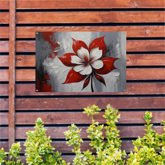 Contrastrijke Abstractie van Rode Bloei tuinposter