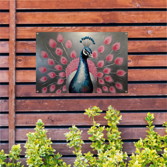 Pauw met roze bloemen in moderne stijl tuinposter