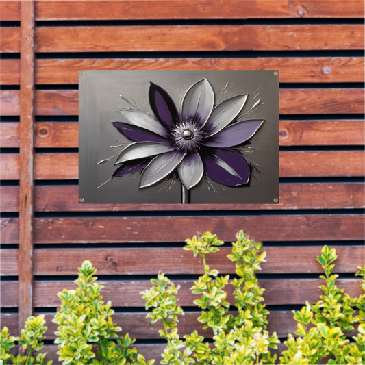 Abstracte Paarse Bloem met Zilveren Accenten tuinposter