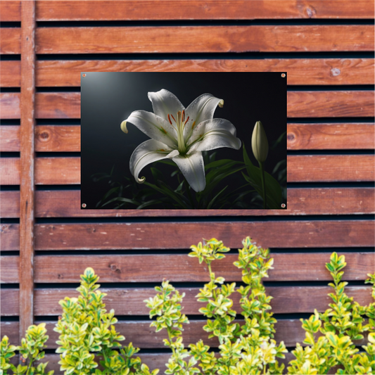 Elegante Witte Lelie met Waterdruppels tuinposter