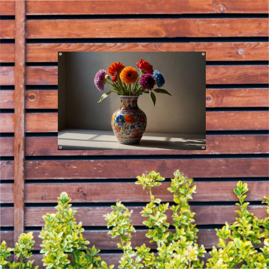 Elegante Bloemenpracht in Versierde Vaas tuinposter