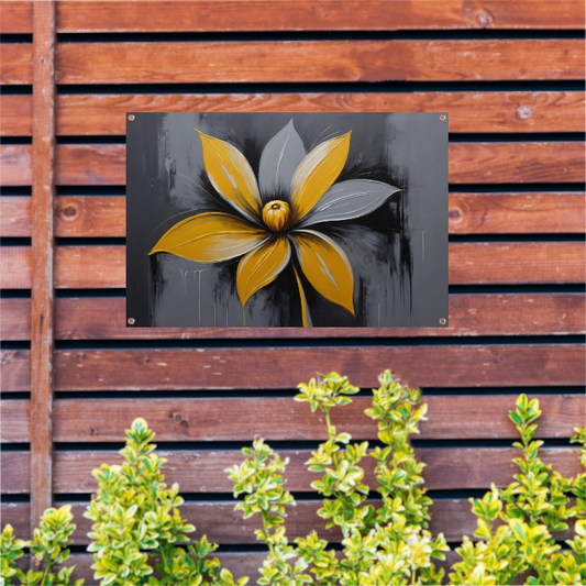 Vivid Yellow Flower Against Grey Backdrop tuinposter